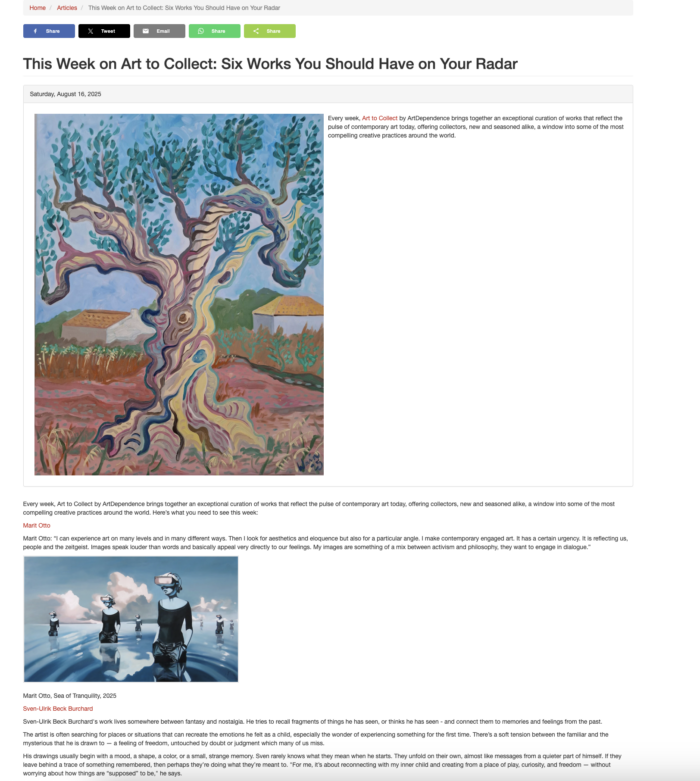 I’ve got a publication in the collectors’ art book Interviews (with artist) van Al-Tiba9- contemporary art. This spread refers at an interview earlier in 2021. This is the link to that interview: https://www.altiba9.com/artist-interviews/marit-otto-social-issues-in-aesthetics-paintings.